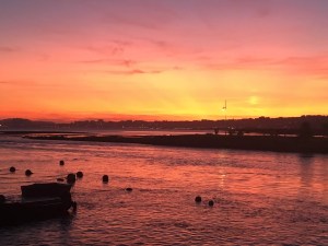 Atardecer en la bahía de Santander, con la ciudad al fondo.
